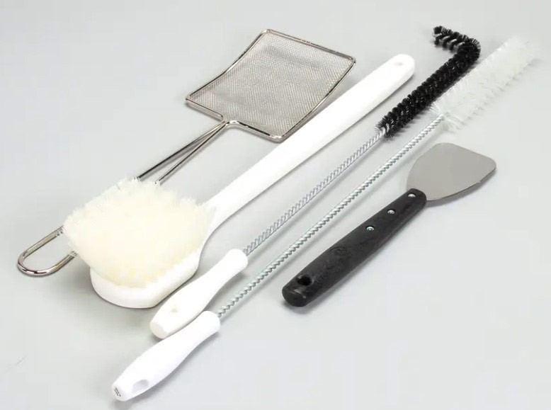 Henny Penny - Kit de 3 Brosses Blanches Entretien pour Friteuse + Spatule + Clé / Brosse a Ferraille / Graisse pour Friteuse Ouverte