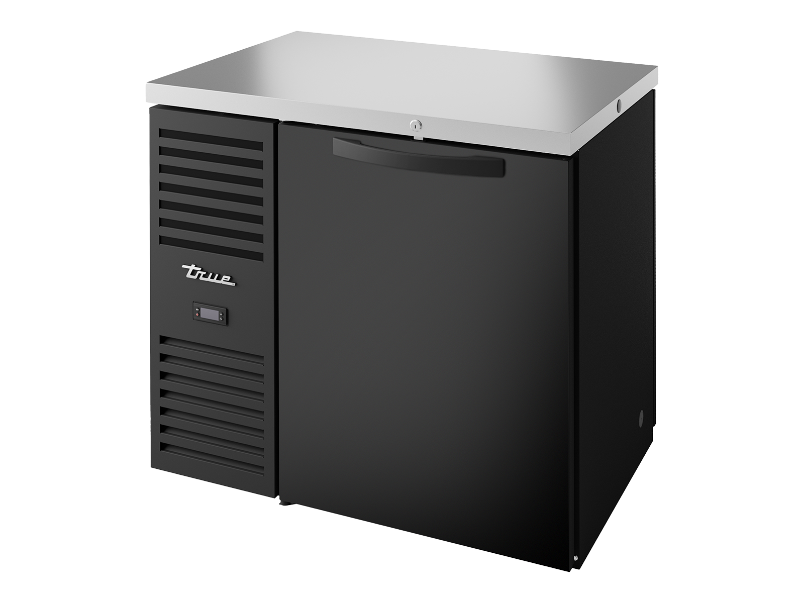 TRUE - Réfrigérateur bar "Traversant", Ext noir Nb de portes : 2 / L914 x P631 x H881 mm / 121 Kg / 350 L Temp° : 0.5 - 3.3°C / 414 W / 220-240 V / 50-60 Hz / 1.8 A / 1PH Face avant en acier epoxy noir. Côtés et arrière en aluminium epoxy noir assorti. Plan de travail en inox. 7 ans Garantie : Pièce / Compresseur / Main d'œuvre Made in USA