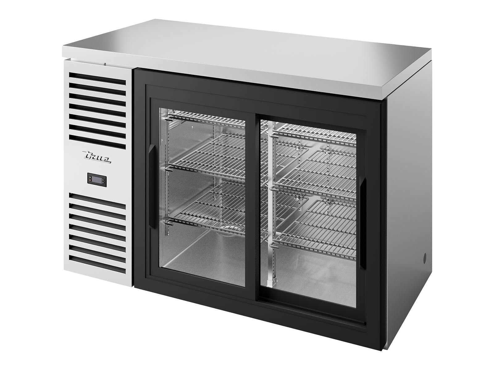TRUE - Réfrigérateur de bar, extension en acier inoxydable Nb de portes coulissantes vitré : 2 / L1219 x P631 x H881 mm / 139 Kg / 440 L Temp° : 0.5 - 3.3°C / 299 W / 220-240 V / 50-60 Hz / 1.3 A / 1PH Face avant en acier inoxydable et comptoir. Côtés et arrière en aluminium. 7 ans Garantie : Pièce / Compresseur / Main d'œuvre Made in USA