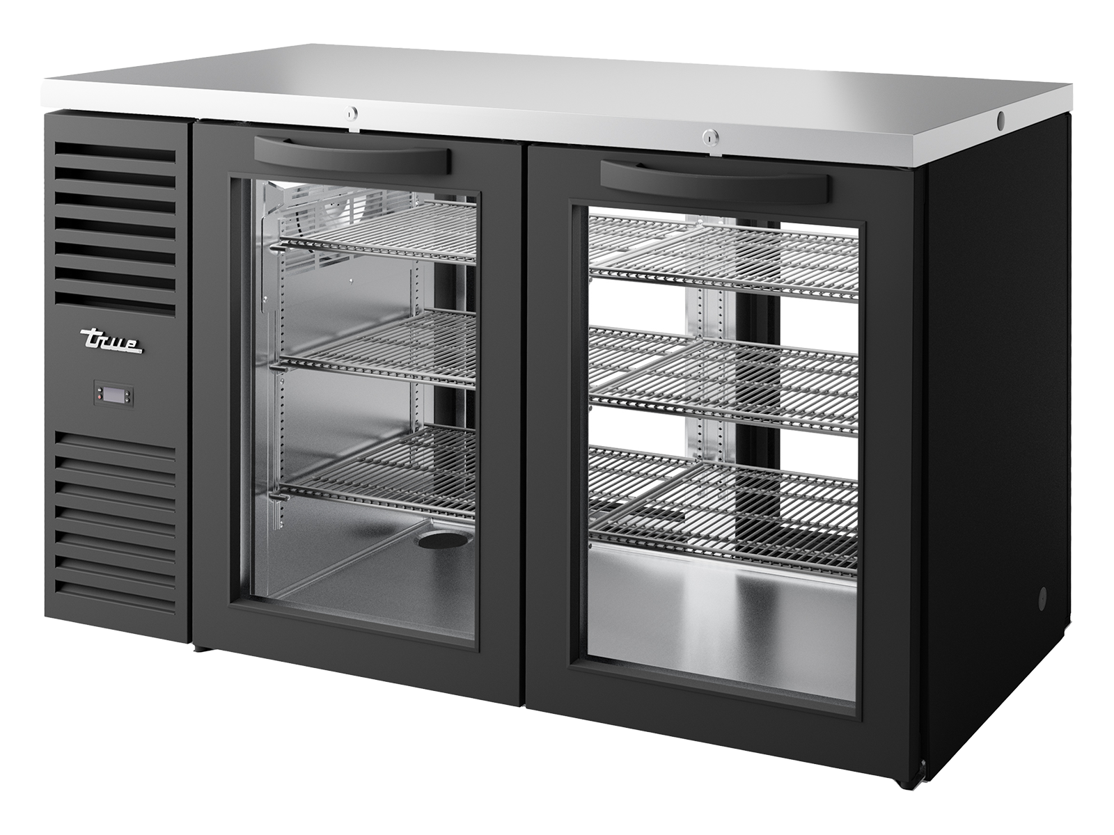 TRUE - Réfrigérateur bar "Traversant", Ext. noir Nb de portes vitrées avant : 2 / Nb de portes vitrées arrière : 2 L1524 x P631 x H881 mm / 174 Kg / 550 L Temp° : 0.5 - 3.3°C / 299 W / 220-240 V / 50-60 Hz / 1.3 A / 1PH Face avant en acier epoxy noir. Côtés et arrière en aluminium epoxy noir assorti. Plan de travail en inox. 7 ans Garantie : Pièce / Compresseur / Main d'œuvre Made in USA