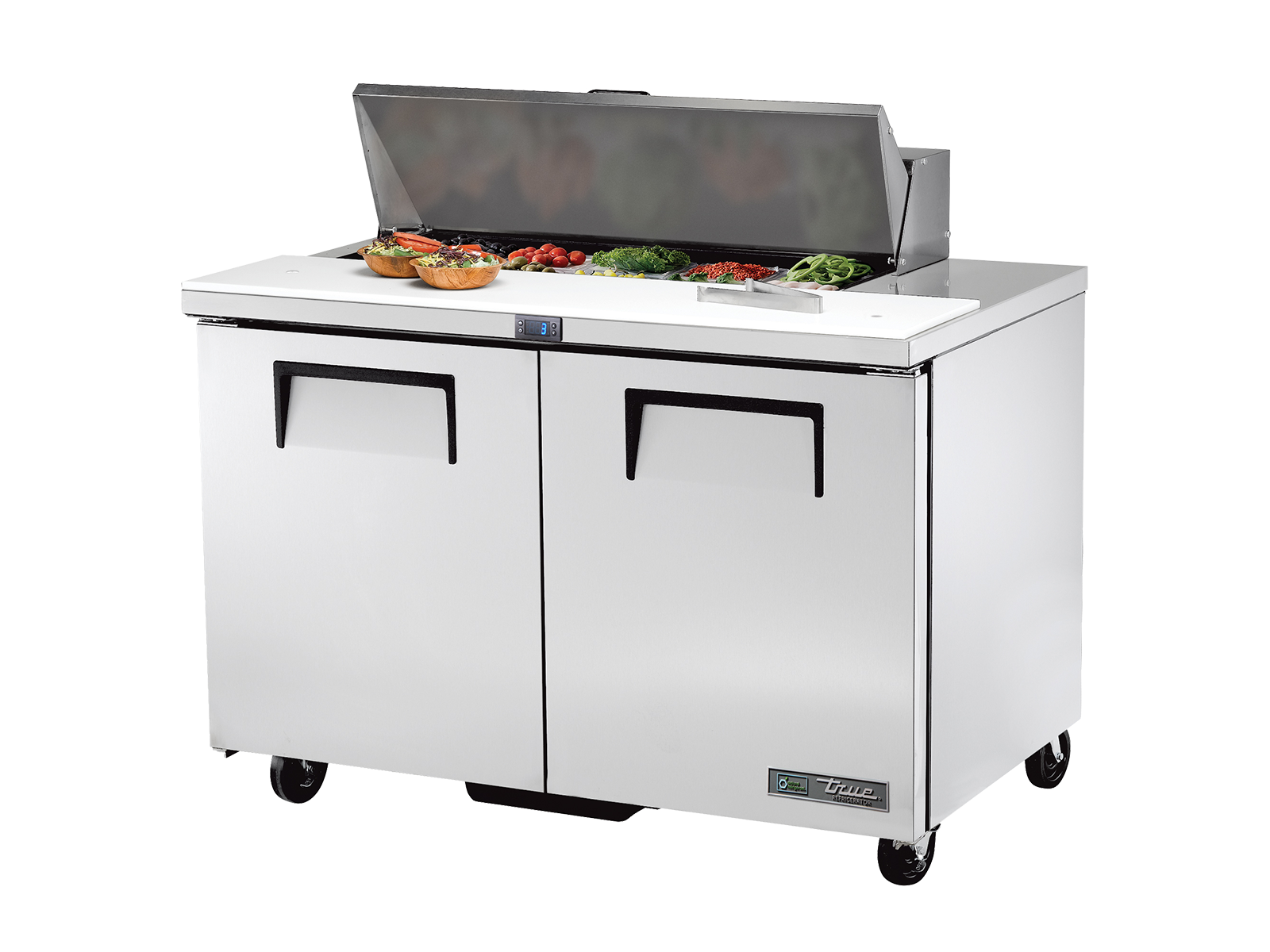 TRUE - Table de préparation Nb de portes : 2 - Nb de bacs GN 1/6 : 10 L1229 x P766 x H1093 mm - 126 Kg - 340 L Temp : 0.5 : 5°C - 0.529 kW - 220-240 V - 50-60 Hz - 2.3 A - 1PH 7 ans Garantie : Pièce - Compresseur - Main d'œuvre Made in USA