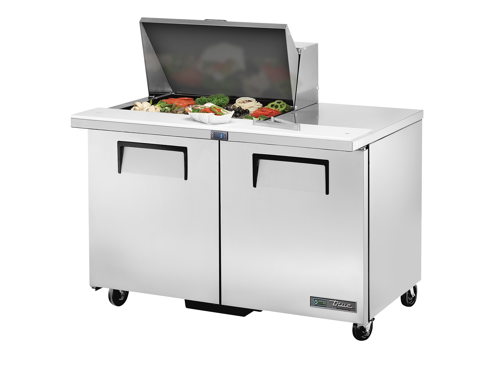 TRUE - Table de préparation Nb de portes : 2 - Nb de bacs GN 1/6 : 12 L1229 x P867 x H1185 mm - 130 Kg - 340 L Temp : 0.5 : 5°C - 0.529 kW - 220-240 V - 50-60 Hz - 2.3 A - 1PH 7 ans Garantie : Pièce - Compresseur - Main d'œuvre Made in USA
