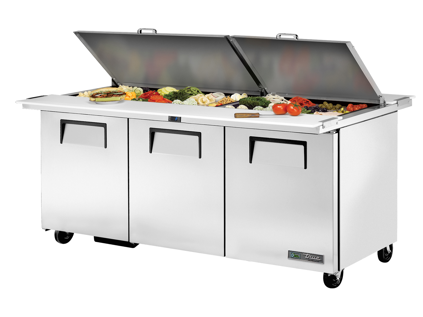 TRUE - Table de préparation - Face à face Nb de portes : 3 - Nb de bacs GN 1/6 : 30 L1839 x P1064 x H956 mm - 212 Kg - 538 L Temp : 0.5 : 5°C - 0.713 kW - 220-240 V - 50-60 Hz - 3.1 A - 1PH 7 ans Garantie : Pièce - Compresseur - Main d'œuvre Made in USA